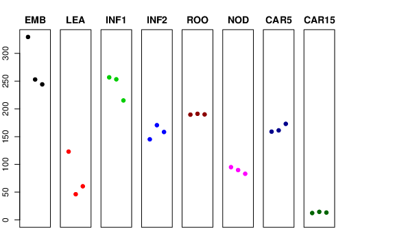 | INF2 | Developing inflorescences (1-1.5 cm) | 145.196 | 170.647 | 158.401 | 154.146 |