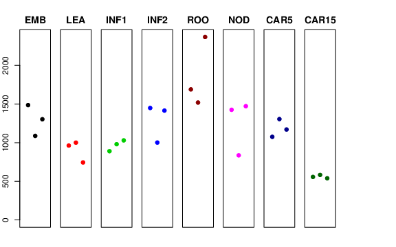 | ROO | Roots from the seedlings (10 cm shoot stage) | 1689.43 | 1519.34 | 2368.06 | 1416.76 |
