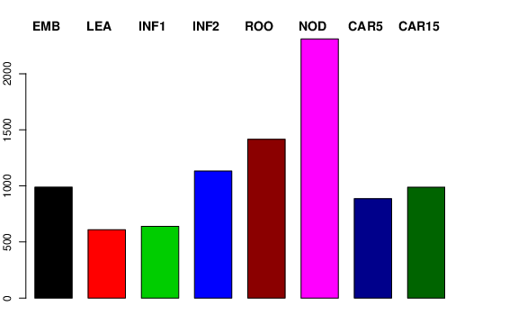 | NOD | Developing tillers at six leaf stage, 3rd internode | 1425.65 | 836.084 | 1471.92 | 2310.78 |