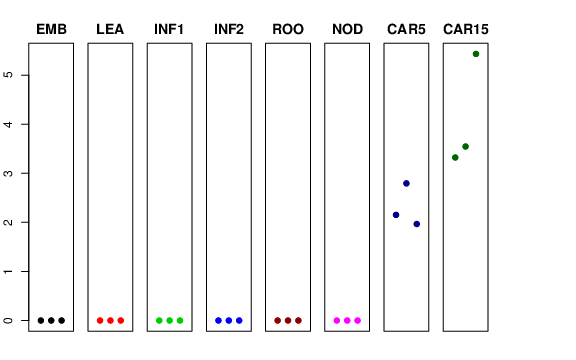 | ROO | Roots from the seedlings (10 cm shoot stage) | 0 | 0 | 0 | 0 |