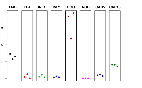 | INF2 | Developing inflorescences (1-1.5 cm) | 0.426604 | 1.1447 | 0.646278 | 0.968235 |