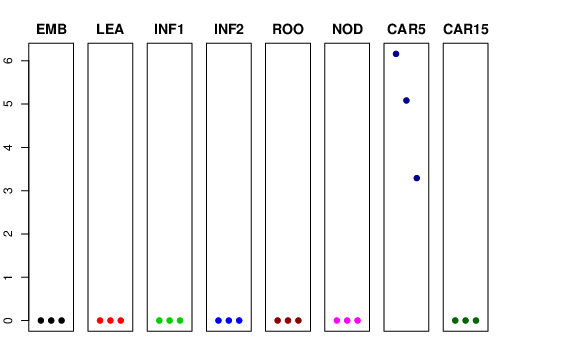| ROO | Roots from the seedlings (10 cm shoot stage) | 0 | 0 | 0 | 0 |