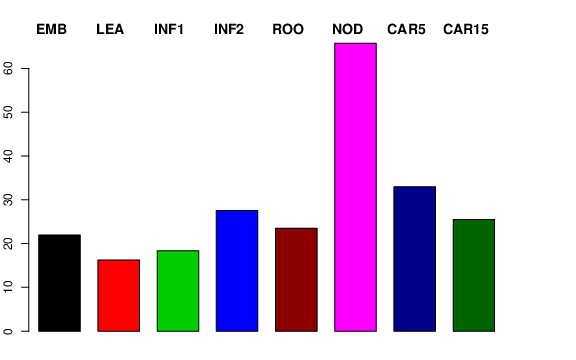 | NOD | Developing tillers at six leaf stage, 3rd internode | 22.484 | 23.3174 | 9.77599 | 65.7397 |