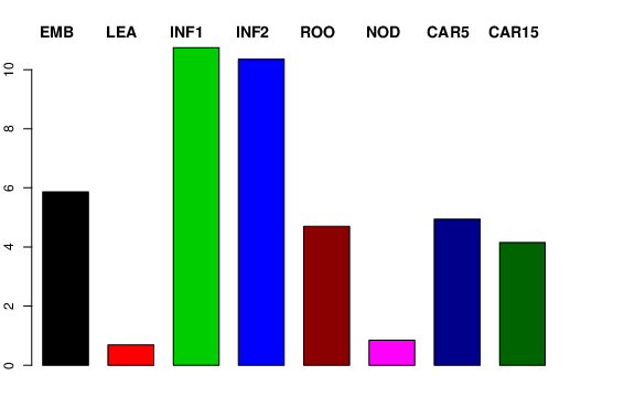 | ROO | Roots from the seedlings (10 cm shoot stage) | 4.67981 | 3.85035 | 5.02266 | 4.69687 |