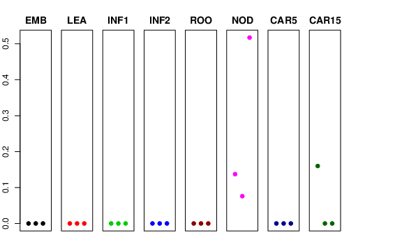 | ROO | Roots from the seedlings (10 cm shoot stage) | 0 | 0 | 0 | 0 |