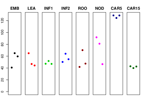 | ROO | Roots from the seedlings (10 cm shoot stage) | 41.8343 | 70.1369 | 47.4315 | 72.82 |