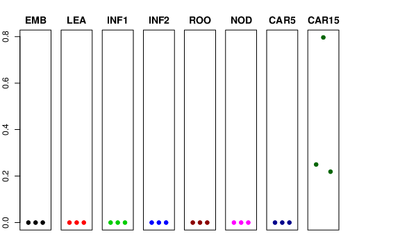 | ROO | Roots from the seedlings (10 cm shoot stage) | 0 | 0 | 0 | 0 |
