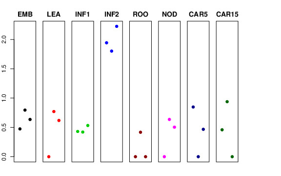 | ROO | Roots from the seedlings (10 cm shoot stage) | 0 | 0.41685 | 0 | 1.40302 |