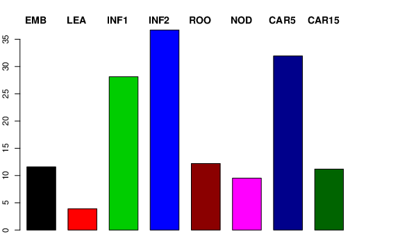 | ROO | Roots from the seedlings (10 cm shoot stage) | 2.30189 | 9.86957 | 14.5775 | 12.2035 |