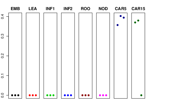 | ROO | Roots from the seedlings (10 cm shoot stage) | 0 | 0 | 0 | 0 |
