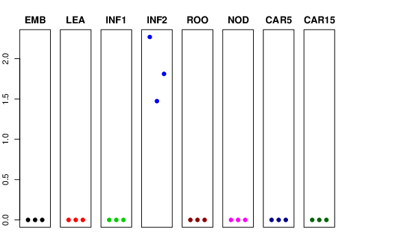 | ROO | Roots from the seedlings (10 cm shoot stage) | 0 | 0 | 0 | 0 |