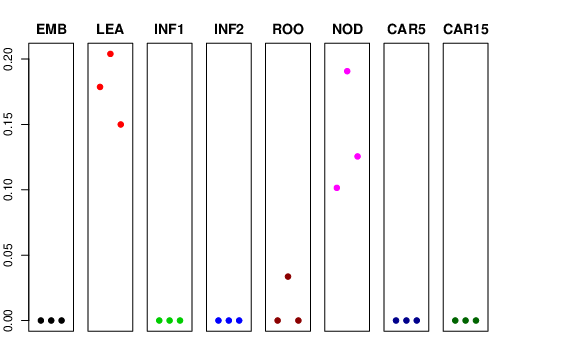 | ROO | Roots from the seedlings (10 cm shoot stage) | 0 | 0.0336062 | 0 | 0.154198 |