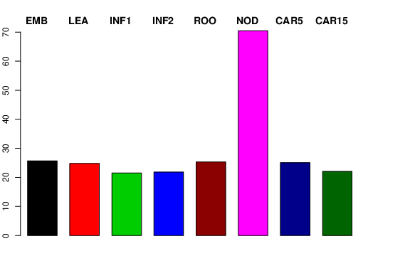 | NOD | Developing tillers at six leaf stage, 3rd internode | 20.1958 | 25.1167 | 28.0581 | 70.4796 |