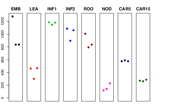 | ROO | Roots from the seedlings (10 cm shoot stage) | 1006.26 | 793.752 | 835.978 | 1031.23 |