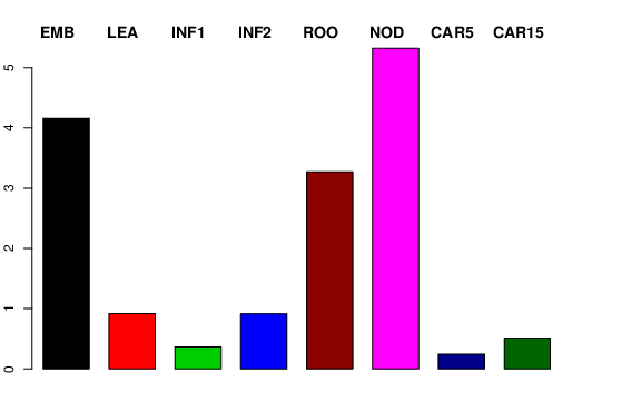 | ROO | Roots from the seedlings (10 cm shoot stage) | 3.04573 | 3.01316 | 2.35443 | 3.27137 |