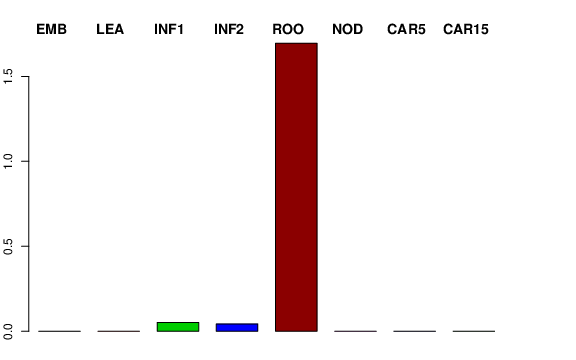 | ROO | Roots from the seedlings (10 cm shoot stage) | 3.51944 | 1.40668 | 1.29874 | 1.69571 |