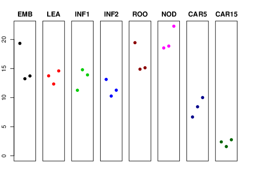 | INF2 | Developing inflorescences (1-1.5 cm) | 13.132 | 10.2709 | 11.2777 | 0 |
