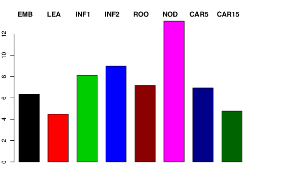 | ROO | Roots from the seedlings (10 cm shoot stage) | 6.03436 | 5.87584 | 5.96325 | 7.17095 |