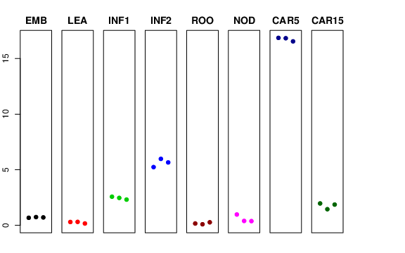 | INF2 | Developing inflorescences (1-1.5 cm) | 5.23324 | 5.97588 | 5.65555 | 6.30036 |