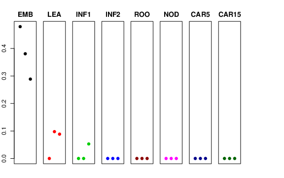 | ROO | Roots from the seedlings (10 cm shoot stage) | 0 | 0 | 0 | 0 |