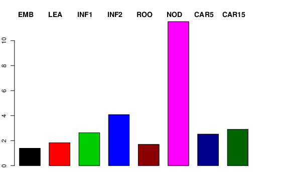 | ROO | Roots from the seedlings (10 cm shoot stage) | 1.36296 | 2.10183 | 2.34726 | 1.69415 |