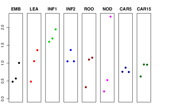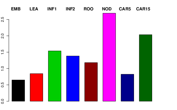 | ROO | Roots from the seedlings (10 cm shoot stage) | 0.325864 | 1.09817 | 1.15271 | 1.17995 |