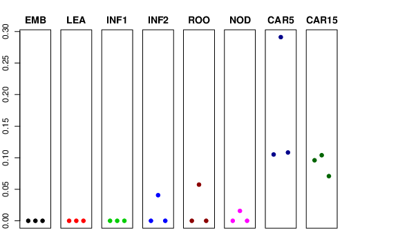 | ROO | Roots from the seedlings (10 cm shoot stage) | 0 | 0.0573297 | 0 | 0.341812 |