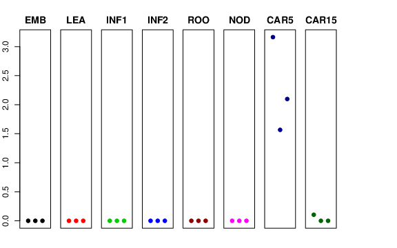 | ROO | Roots from the seedlings (10 cm shoot stage) | 0 | 0 | 0 | 0 |