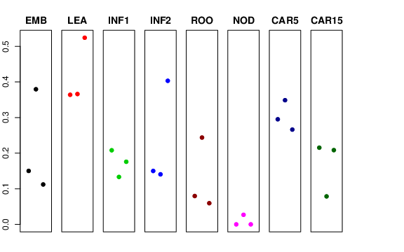 | ROO | Roots from the seedlings (10 cm shoot stage) | 0.0795707 | 0.243781 | 0.0594396 | 0.270674 |