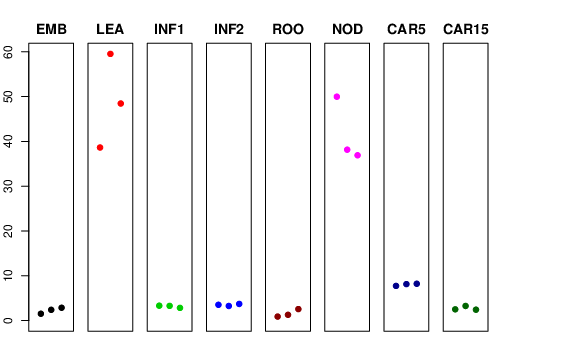 | ROO | Roots from the seedlings (10 cm shoot stage) | 0.878233 | 1.27264 | 2.54945 | 1.31062 |