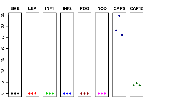 | ROO | Roots from the seedlings (10 cm shoot stage) | 0 | 0 | 0 | 0 |