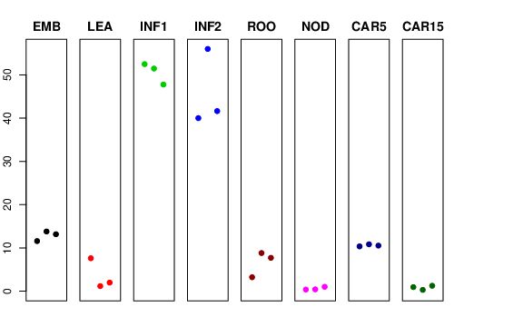 | ROO | Roots from the seedlings (10 cm shoot stage) | 3.21465 | 8.80762 | 7.70348 | 10.327 |