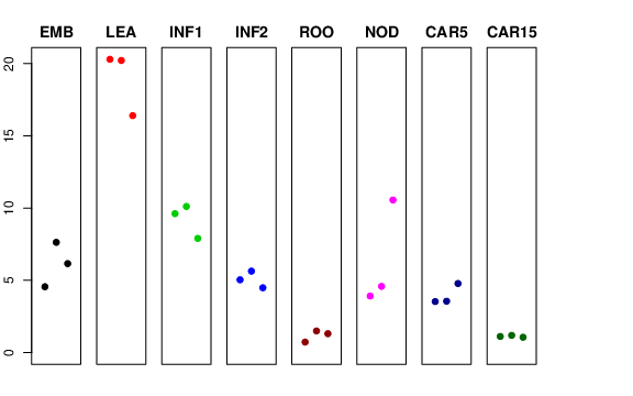 | ROO | Roots from the seedlings (10 cm shoot stage) | 0.724985 | 1.49736 | 1.30645 | 1.63531 |