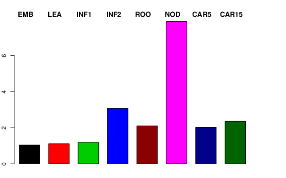 | ROO | Roots from the seedlings (10 cm shoot stage) | 1.42953 | 1.87772 | 1.74867 | 2.10049 |