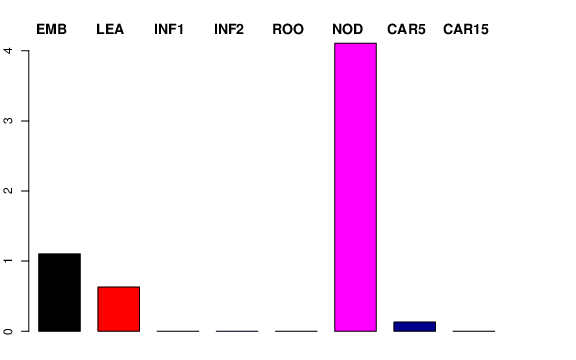 | NOD | Developing tillers at six leaf stage, 3rd internode | 2.65695 | 1.79103 | 0.57163 | 4.10851 |