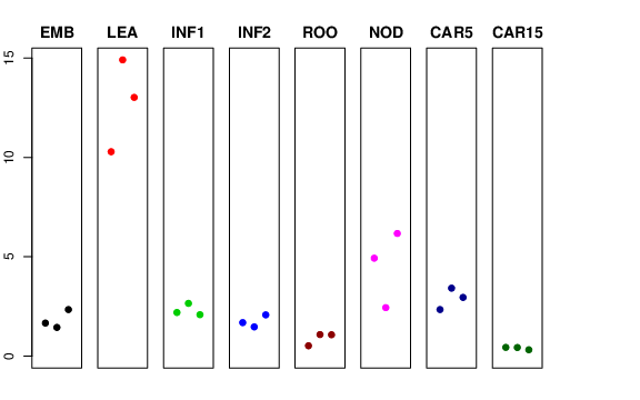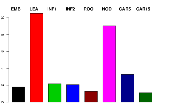 | ROO | Roots from the seedlings (10 cm shoot stage) | 0.520879 | 1.08405 | 1.07502 | 1.27139 |
