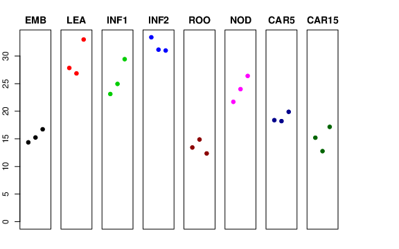 | INF2 | Developing inflorescences (1-1.5 cm) | 33.3882 | 31.1497 | 30.9936 | 32.44 |