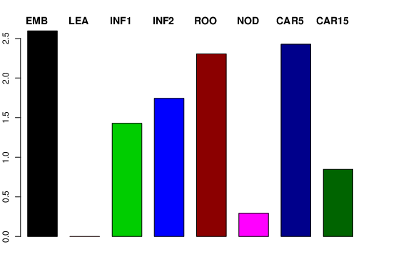 | ROO | Roots from the seedlings (10 cm shoot stage) | 2.73965 | 1.53255 | 3.3879 | 2.30544 |