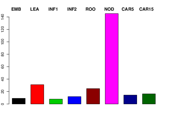 | NOD | Developing tillers at six leaf stage, 3rd internode | 33.731 | 39.3993 | 54.4546 | 145.501 |