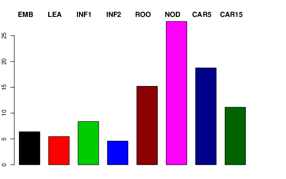 | NOD | Developing tillers at six leaf stage, 3rd internode | 23.0097 | 8.49285 | 26.3454 | 27.7509 |