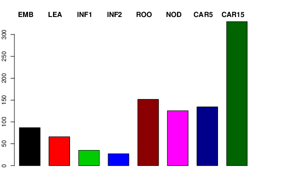 | ROO | Roots from the seedlings (10 cm shoot stage) | 175.246 | 163.686 | 248.329 | 151.62 |