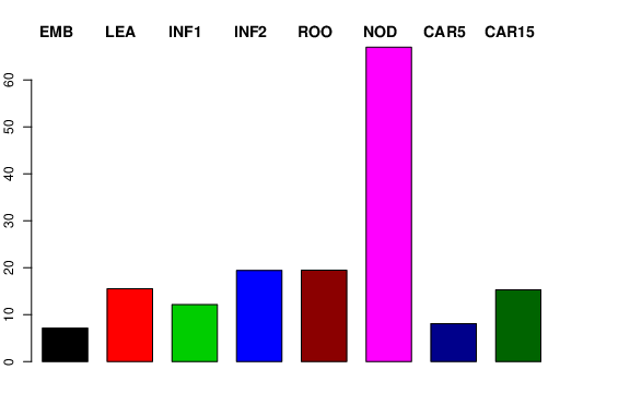 | NOD | Developing tillers at six leaf stage, 3rd internode | 12.5861 | 19.2953 | 14.692 | 66.9566 |