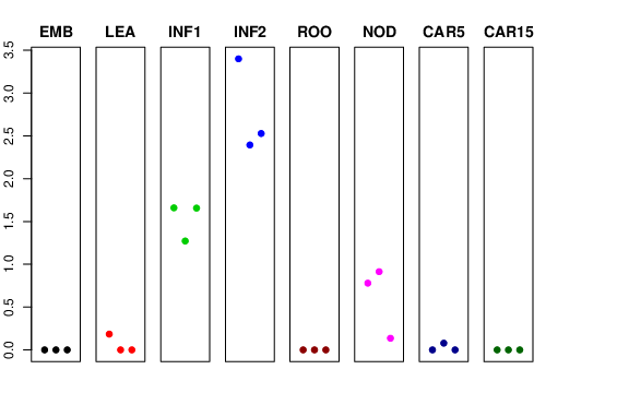 | ROO | Roots from the seedlings (10 cm shoot stage) | 0 | 0 | 0 | 0 |