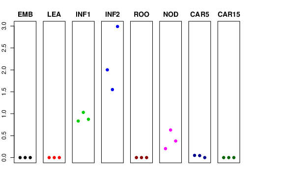 | ROO | Roots from the seedlings (10 cm shoot stage) | 0 | 0 | 0 | 0 |