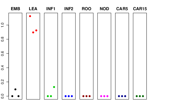 | ROO | Roots from the seedlings (10 cm shoot stage) | 0 | 0 | 0 | 0 |