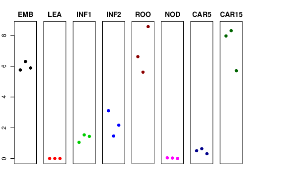 | ROO | Roots from the seedlings (10 cm shoot stage) | 6.62397 | 5.61755 | 8.57541 | 8.81279 |