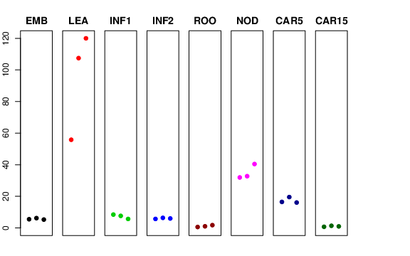 | ROO | Roots from the seedlings (10 cm shoot stage) | 0.580277 | 1.02385 | 1.75654 | 1.26489 |