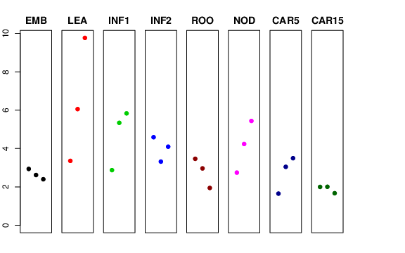 | ROO | Roots from the seedlings (10 cm shoot stage) | 3.46525 | 2.96384 | 1.94477 | 3.06352 |