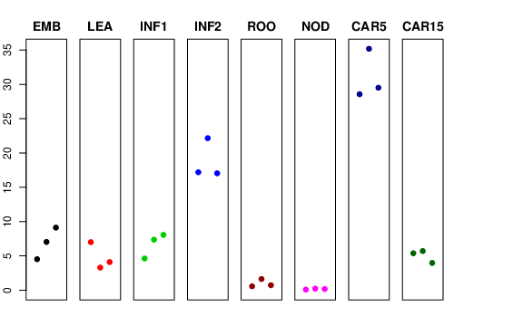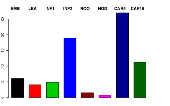 | ROO | Roots from the seedlings (10 cm shoot stage) | 0.576509 | 1.63334 | 0.730245 | 1.52641 |