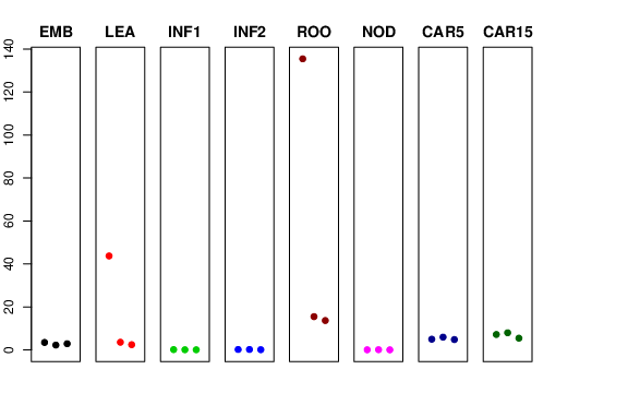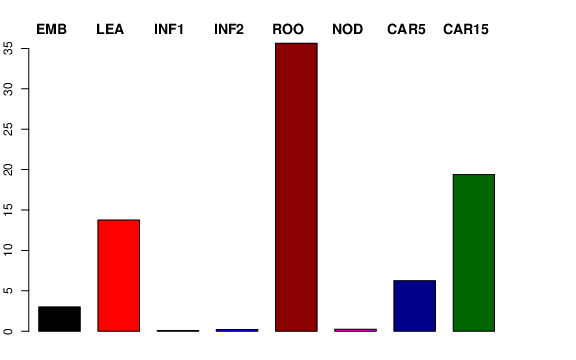 | ROO | Roots from the seedlings (10 cm shoot stage) | 135.423 | 15.4753 | 13.6522 | 35.6466 |